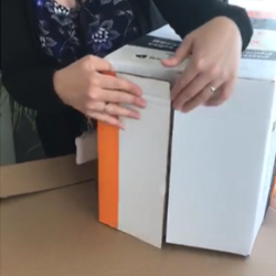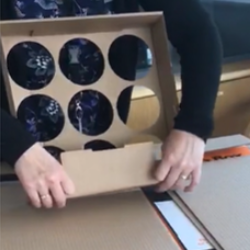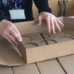 The final piece of cardboard, which should be a small, flat piece of cardboard is needed once the box is full, so this needs to be kept safely until then. Once the box is full, remove the lid with the cup holes in it and place the small piece of cardboard on top of the cups. Replace the lid and secure with parcel tape. This will keep all of the cups in place and stop them from moving around during transportation.